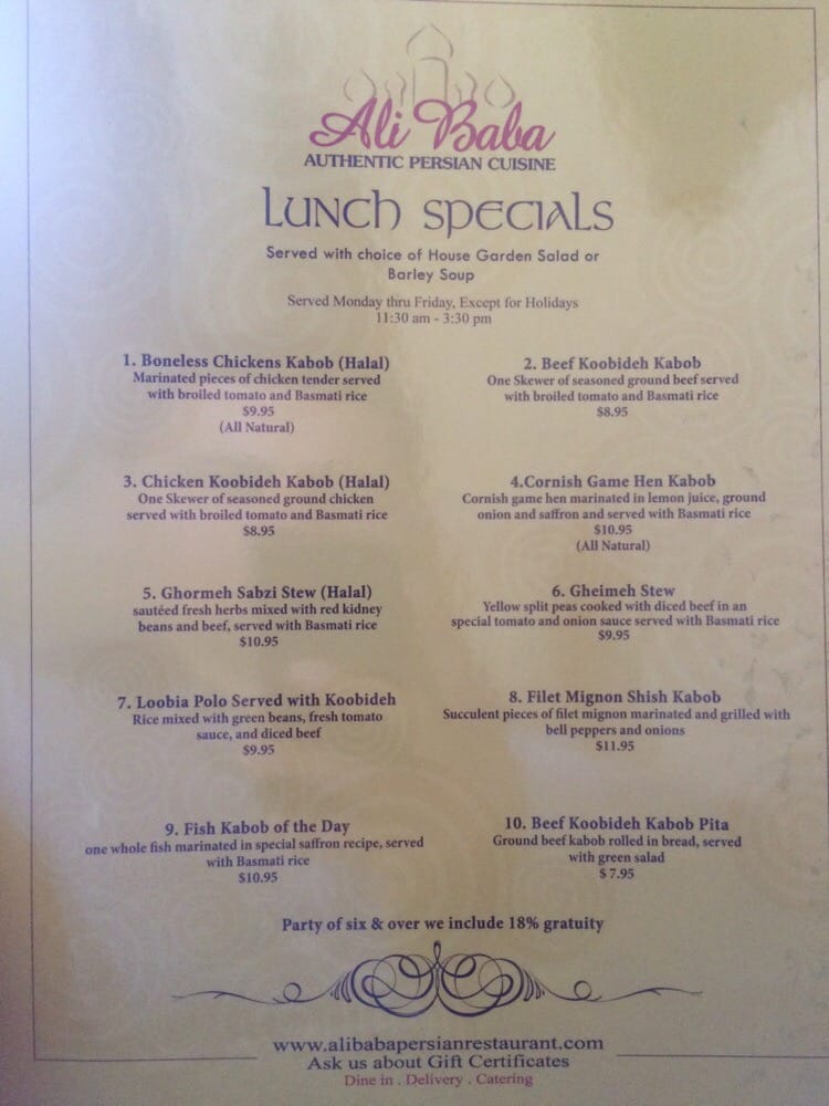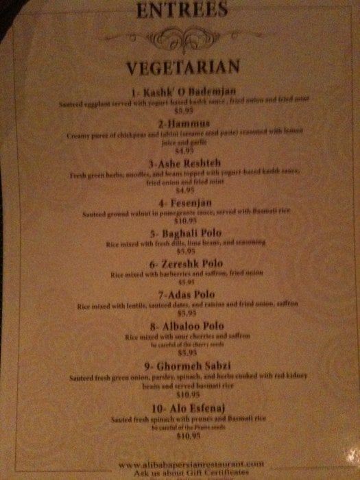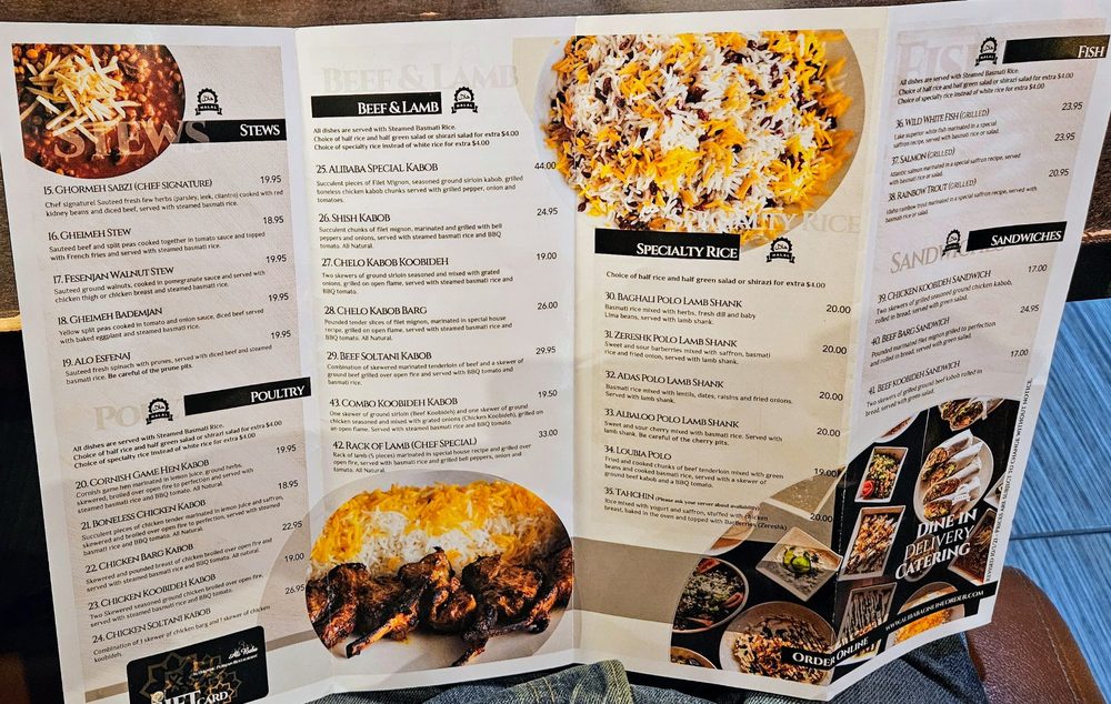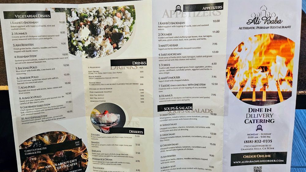 Ali Baba Persian Restaurant offers a wide range of Persian cuisine in a casual and welcoming setting in Granada Hills, CA. The menu includes traditional dishes such as Kashk O' Bademjan, Mast' O Khiar, Ghormeh Sabzi Stew, and Fesenjan Walnut Stew. Customers rave about the quality of the food, with reviews praising the juicy Koobideh, flavorful Chicken Kebabs, and exceptional service. The restaurant also provides vegan and vegetarian options, catering services, and gender-neutral restrooms, making it inclusive for all diners. With dishes that raise the standards of Persian cuisine, Ali Baba Persian Restaurant is a gem for those seeking an authentic dining experience.